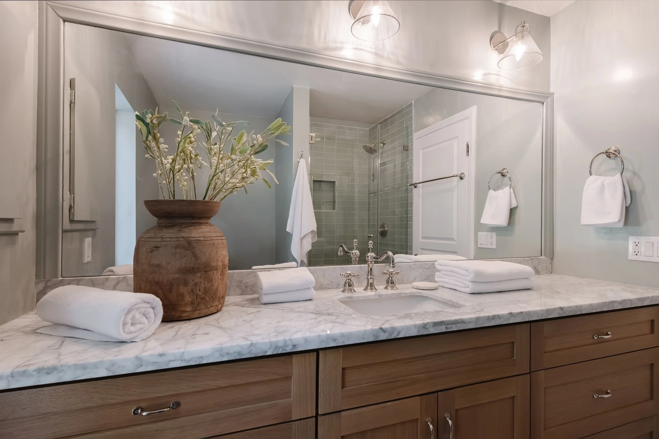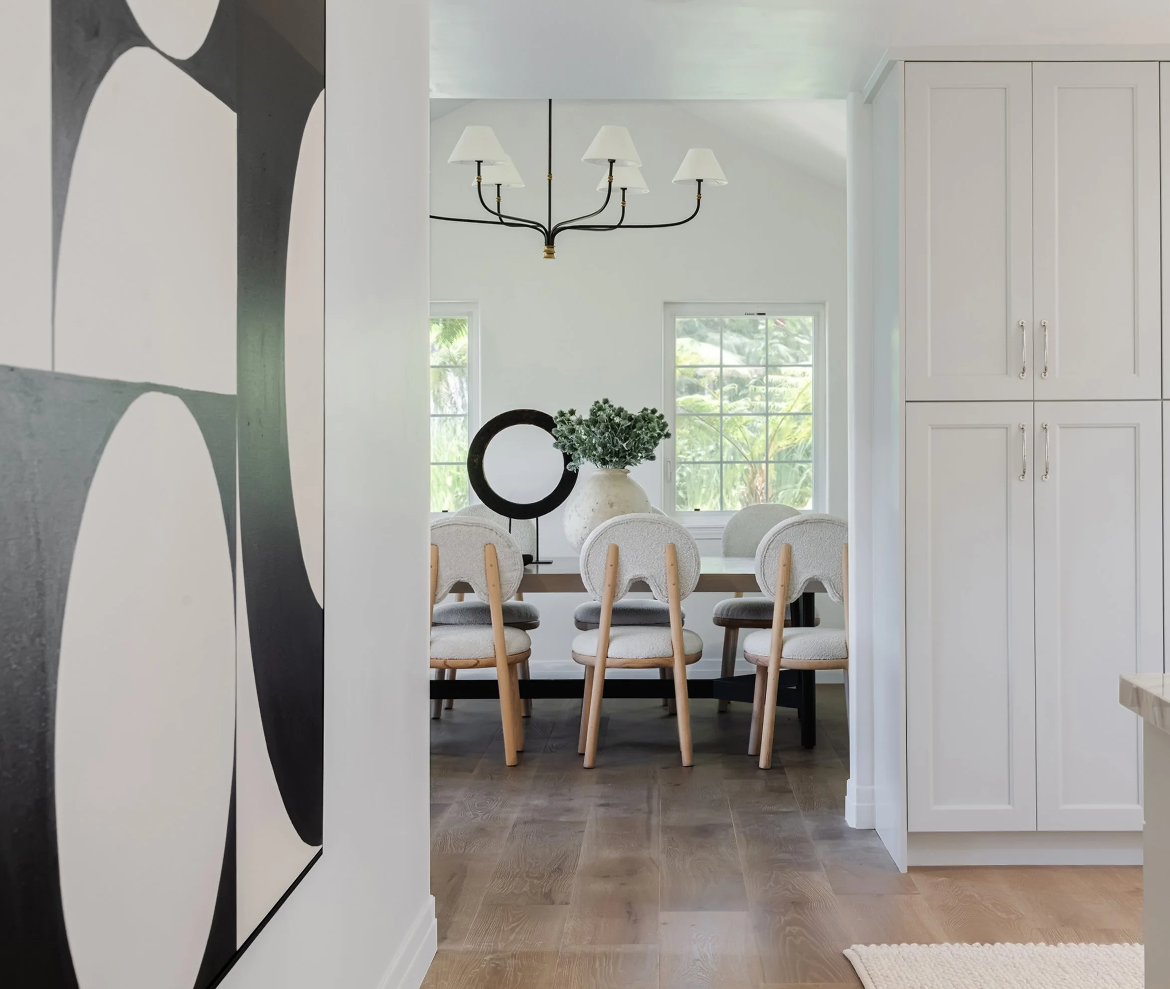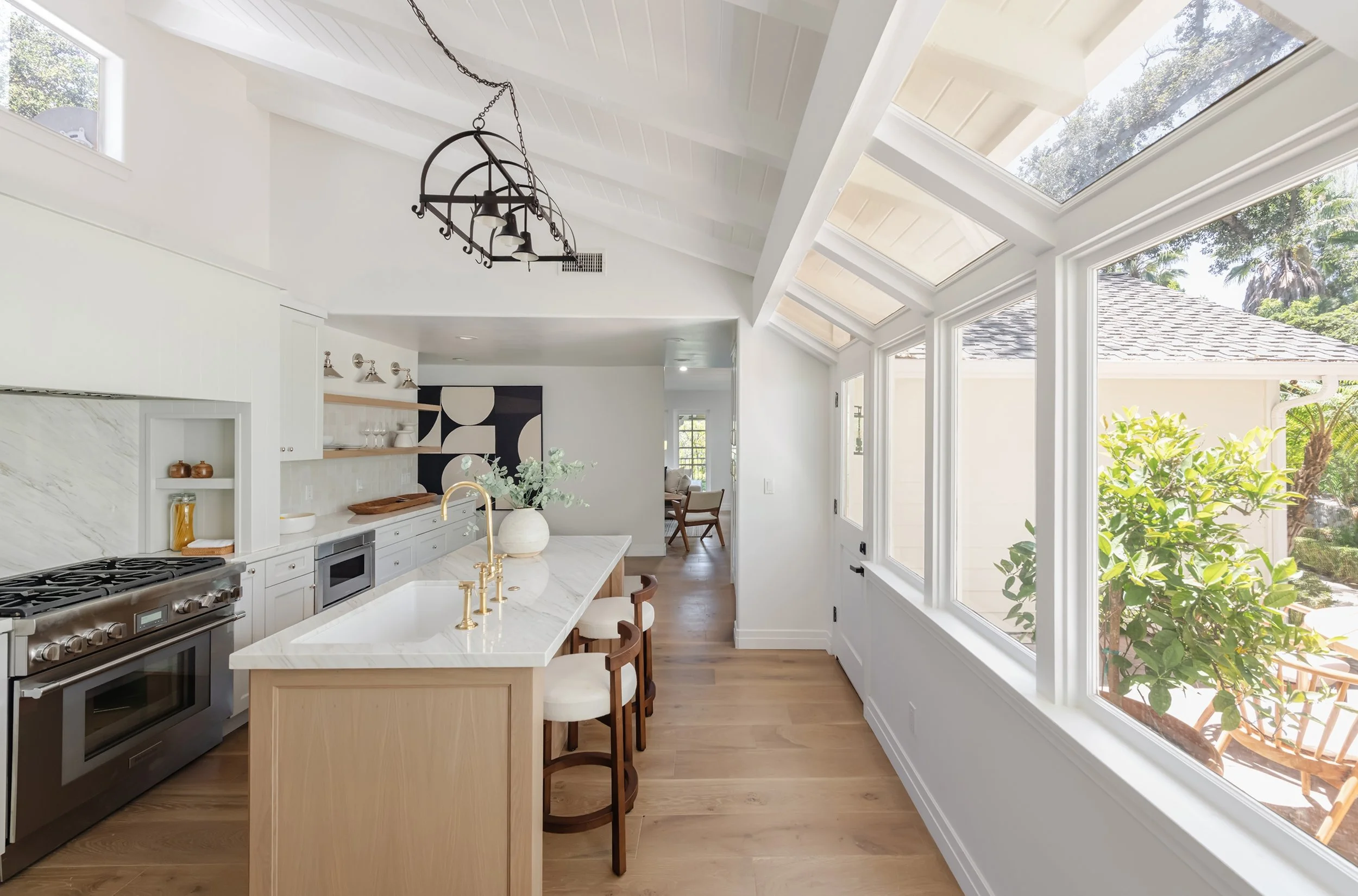 This home had wonderful bones, but it needed a complete reimagining to bring out its full potential. We transformed the kitchen into a light and bright centerpiece, layering soft white cabinetry with warm wood accents and subtle shimmering tile for a look that feels fresh yet timeless. Throughout the home, I focused on creating a calm, grounded, and quietly refined atmosphere, with spaces designed for meaningful moments and everyday ease. The remodel took the home from dated to dreamy, with warm textures, organic tones, and abundant natural light. Every detail was carefully curated to preserve character and charm while elevating the design into something both modern and enduring to preserve original character.